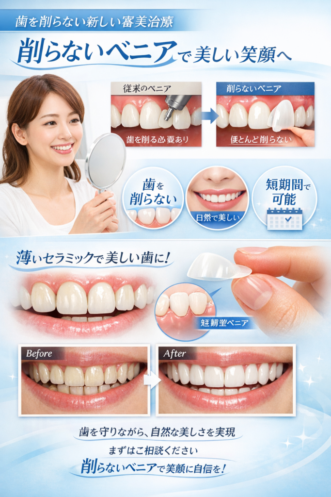 「ブラックフィルム」と同等?歯を削らない新しい審美歯科 ― 進化した「削らないベニア」とは?